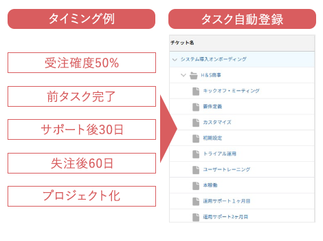 商談やプロジェクトに応じてタスクを自動作成できます。