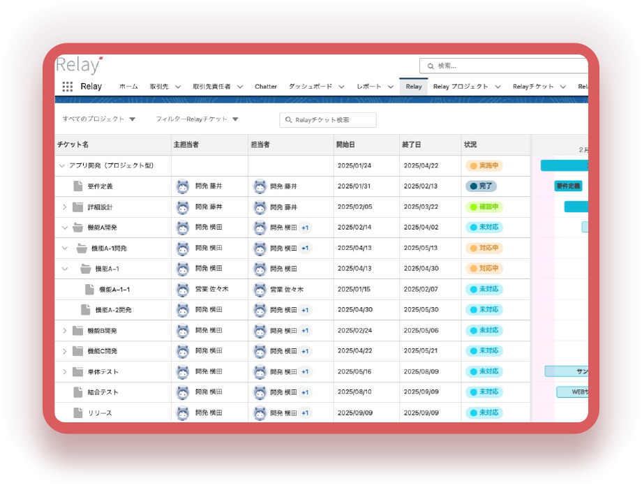 Task Relayは100% Salesforceネイティブアプリケーションです。Salesforceの基本機能を使用することができます。